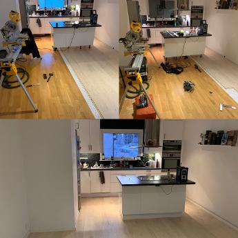 Byte av parkett i en villa i Stockholm, lite pyssligt när köket är på plats men det blev mycket snyggt