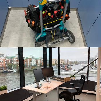 Montering av nya arbetsplatser på Ryds Bilglas nya HK på Hammarby kaj.