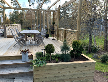 Ny trall, pergola och blomlådor vi hjälpt till med hos en kund på Värmdö .