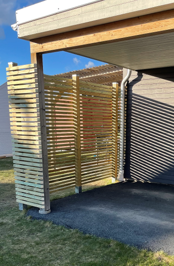 Bygge av spaljé samt stor blomlåda för att skärma av parkeringen hos kund.