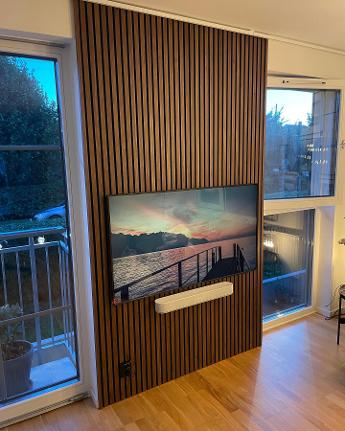 Ny mediavägg med snygg akustikpanel.
